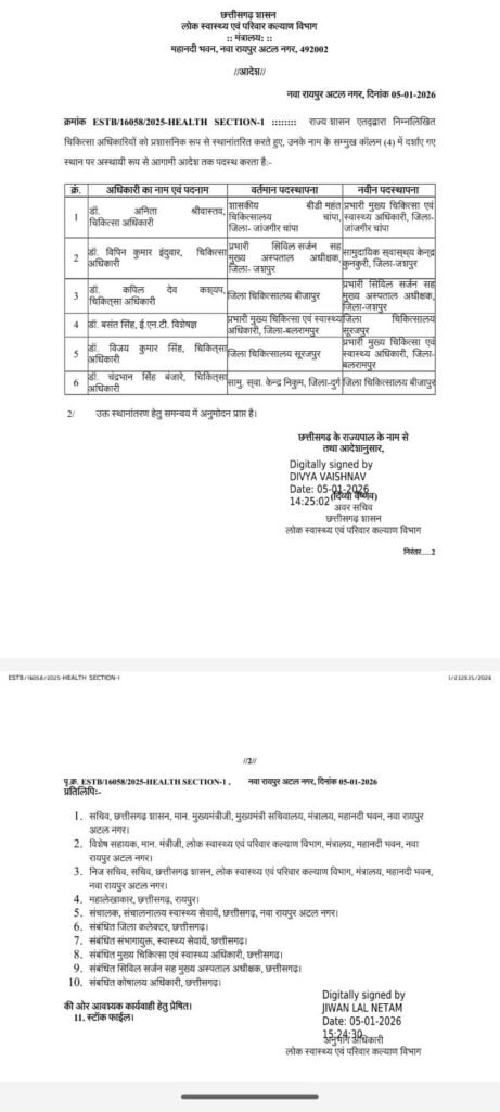 फिलहाल, जांजगीर–चांपा जिले का यह मामला सिर्फ एक प्रशासनिक आदेश तक सीमित नहीं रह गया है, बल्कि यह व्यवस्था, पारदर्शिता और जवाबदेही की कसौटी पर खड़ा एक बड़ा सवाल बन चुका है।