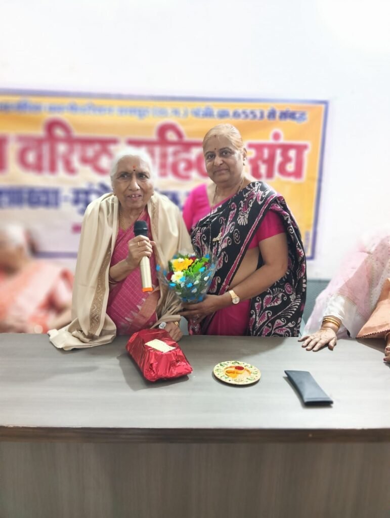 संघ की अध्यक्ष उमा शर्मा ने उनका अभिनंदन किया, वहीं सचिव मंजू सोलंकी ने उन्हें शाल व पुष्पगुच्छ भेंट कर आशीर्वाद लिया। वृद्धवस्था के इस पड़ाव पर भी उनकी उपस्थिति ने कार्यक्रम में नई ऊर्जा भर दी। समारोह में विशिष्ट अतिथियों के रूप में उपस्थित नगर पालिका अध्यक्ष रोहित शुक्ला का सम्मान कोषाध्यक्ष प्रमिला चौरसिया ने किया। इसके साथ ही पार्षद संगीता साहू और संघ की संरक्षक श्रीमती उर्मिला सोनी व सरिता वाजपेयी को भी उनके उल्लेखनीय कार्यों के लिए सम्मानित किया गया।