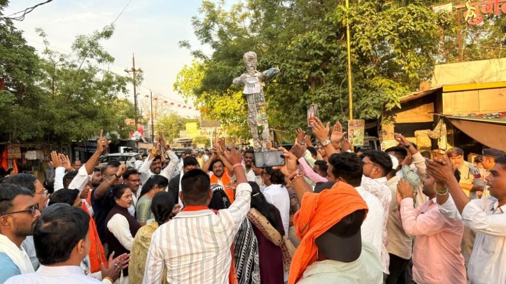 मुंगेली। भारतीय जनता युवा मोर्चा और महिला मोर्चा जिला मुंगेली द्वारा बुधवार को परशुराम चौक, पुराना बस स्टैंड पर विशाल जन आक्रोश प्रदर्शन किया गया। यह प्रदर्शन लोकसभा में कांग्रेस और समूचे विपक्षी दलों द्वारा ‘नारी शक्ति वंदन अधिनियम’ का विरोध किए जाने के खिलाफ किया गया, जिसके दौरान कार्यकर्ताओं ने नारेबाजी करते हुए पुतला दहन किया।